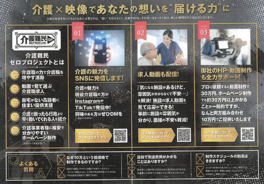 介護業界では人材不足が深刻です。動画で職場の雰囲気や働くスタッフの声を伝えることで、求職者の関心を引きやすくなります。「どんな人が働いているのか」「どんな雰囲気の職場か」を動画で確認できると、応募への心理的ハードルも下がります。